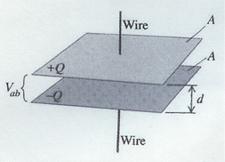 - 단면적 A인 두 도체 평행판이 대전되어 d만큼 떨어져 전위차가 V가 되었을 때