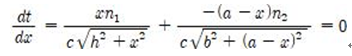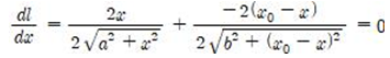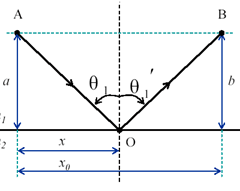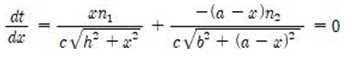 반사의 법칙으로 인하여 θ1과 θ1'는 같다. 그렇다면 이 공식을 유도하여 보자. 위에서 파르마의 원리를 보았듯이 최소작용식은