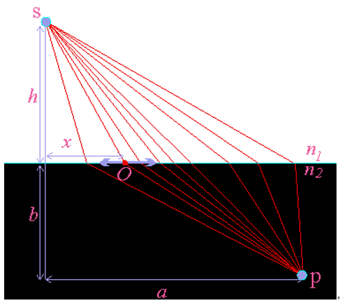 위 그림에서 빛이 S에서 O점으로 통해 P점으로 간다고 하자.