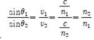 이때 매질 속에서 빛의 속도는 진공에서의 빛의 속도(c)보다 느리므로, 느린 정도를 굴절율로 나타내면,
