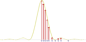 위 그림은 이 결과를 그래프로 그린 것이다. 단일 슬릿과 스크린 사이에 렌즈로서 빛을 집속할 때 렌즈의 초점은 θ=0 이고 따라서 β=0이다. 또한 초점에서 벗어나는 거리가 커질수록 β도 같이 커지는데 θ가 대체로 매우 작은 값을 가지 고 있으므로 근사적으로 β=1/2kbθ로 놓을 수 있어 밑의 그래프 모양과 거의 같은 형태의 무늬가 스크린에 형성되는 것을 알 수 있다.
