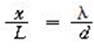 위에서 쓰인 보강 간섭과 상쇄 간섭의 식을 쓰면 이중슬릿에서의 보강과 상쇄는 다음의 식과 같이 표현된다.