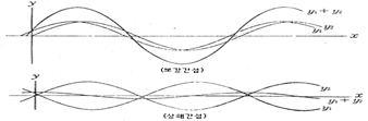 < 파동의 보강간섭과 상쇄간섭> ② 서로 다른 방향으로 진행하는 두 파동이 한 매질 속에서 간섭할 때에는 매질의 각 지점은 진폭이 다르게 되는데, 이 때 최대의 진폭을 갖게 되는 지점을 보강 간섭한 점이라 하고 진폭이 0이 되는 지점을 소멸 간섭한 점이라 한다.