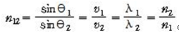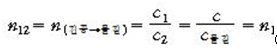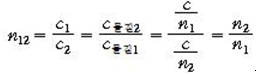 ( 빛이 진공에서 물질 속으로의 진행시의 굴절률) 그러므로, 매질1에서 매질2로 빛이 진행할 때,