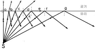 빛이 물질의 경계면에서 모두 반사하는 현상으로써 아래의 그림에 잘 나타나 있다.