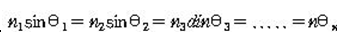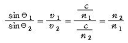 따라서 굴절률이 다른 두 개 이상의 매질이 서로 평행한 경계면을 이루고 있을 때 다음 관계식이 성립한다.