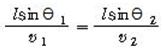 - 매질1에서 매질2로 빛이 진행할 때 매질1에서의 광속을 V1, 빛의 파장을 λ1, 매질2에서의 속력을 V2라 하면 빛이 굴절할 때, 진동수는 변하지 않으므로 제1매질에 대한 2매질의 상대굴절률은