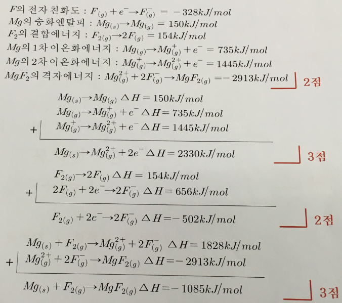 MgF2의 격자 에너지 =-2913kJ/mol