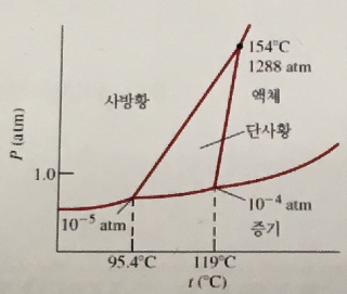 ① 1기압, 110℃에서는 단사황이 가장 안정하다.