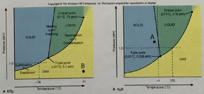 4. 그림은 이산화탄소와 물의 상평형 그림이다. 이 그림에 대한 설명 중 옳지 않는 것은?