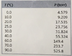 2. 오른 편 표는온도에 따른 물의 증기압 자료이다. 물의 증발엔탈피를 kJ/mol 단위로 구하라.