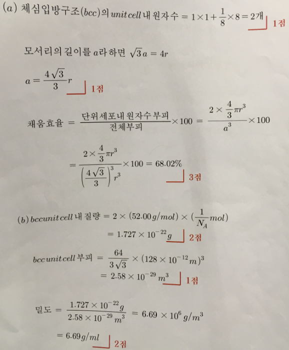 1.(10점) Cr은 체심입방 구조를 가지며, 원자 반지름은 128pm이다. 다음 물음에 답하라.