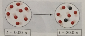 2.(10점) 반응물 A가 1차 반응으로 생성물 B로 변화하는 과정을 아래 그림으로 나타내었다.