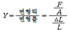 그림과 같이 길이 L, 단면적 A인 금속 막대에 힘 F를 길이 방향으로 가하여 막대의 길이 를 L+ΔL로 증가시킬 경우, 금속 막대의 Young률 Y는