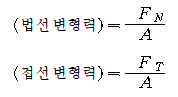 고체의 모양을 변형시키는 변형력은 작용하는 힘 F의 단변멱 A에 대한 비로 나타낸다. 곧,