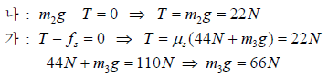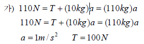 (가) 두 물체 간에 작용하는 힘을 구하여라.
