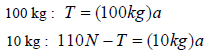 4-11. 질량이 100 kg인 물체에 질량이 10 kg인 밧줄을 연결하여 수평 방향으로 110 N의 힘으로 끌고 있다.