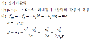 (나) 운동마찰력과 정지마찰력의 크기를 비교하여, 감속이나 가속할 때 더 유용한 것은 어느 것인가? 그 이유를 설명하여라.