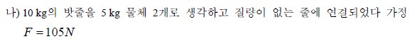 (나) 밧줄의 중간 부분에 작용하는 장력은 얼마인가?풀이)