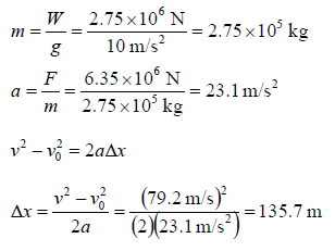 4-4. 화물이 실린 어떤 비행기의 무게가 2.75x10^6 N이다. 그 비행기의 엔진 추진력이 6.35x10^6 N